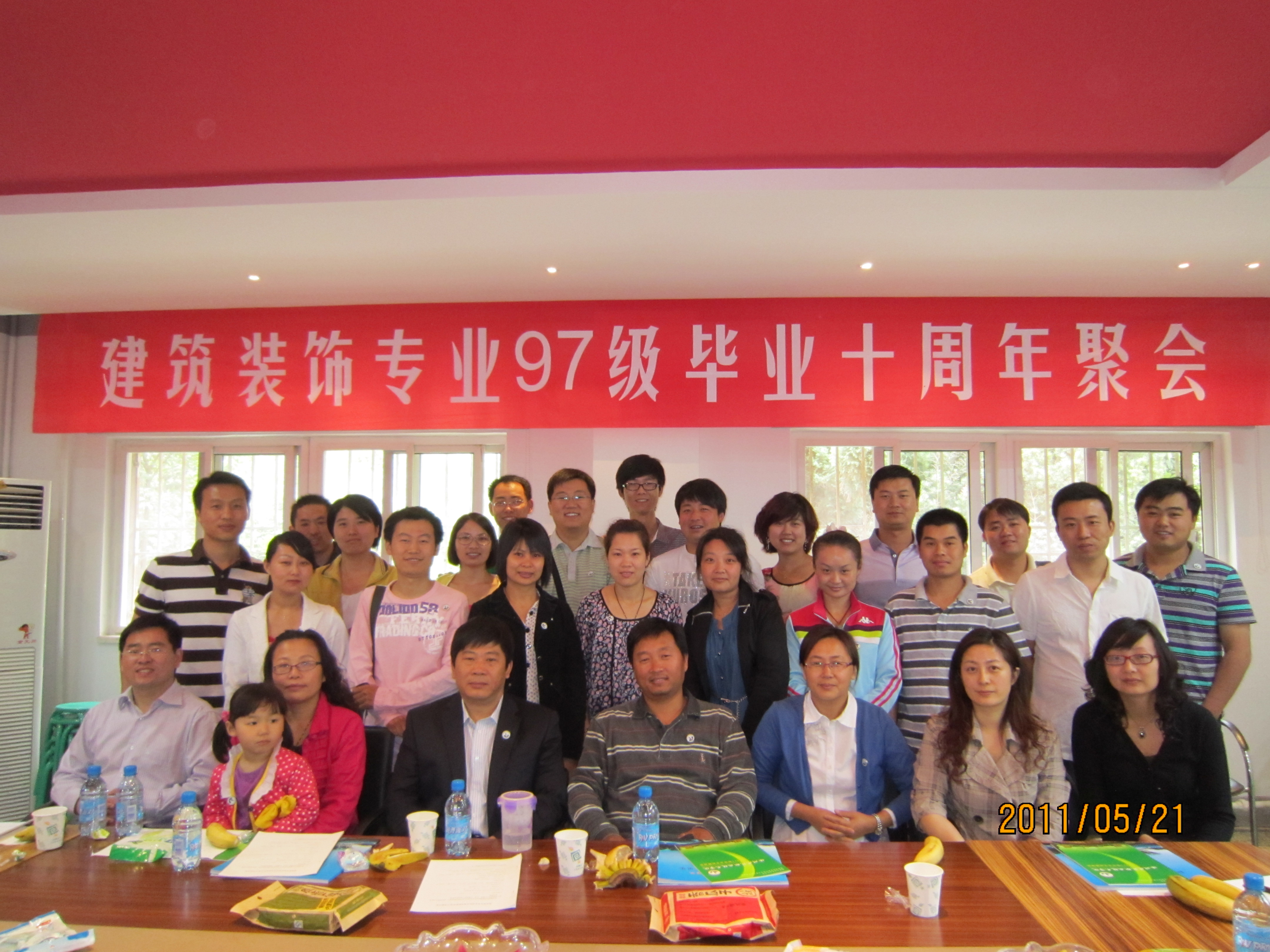 2011年5月21日,我院建筑装饰工程技术专业97-1、2班近40名校友从祖国的四面八方汇聚徐州,举行毕业10周年聚会活动。建筑装饰工程技术学院党总支书记黄立营、党总支副书记葛志亮、副院长江向东、建筑装饰教研室主任王峰、室内设计教研室主任陆文莺、班主任徐思田和赵炜老师在学院会议室热情地接待了各位校友,共叙师生之情。