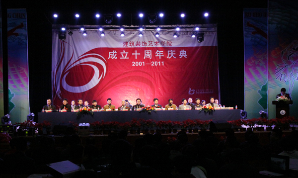 11月20日上午,建筑装饰艺术学院在学校会堂隆重举行成立十周年庆典大会。学校党委书记袁洪志,院长吴光林,副院长季翔、任留钦、张登宏、沈士德,徐州市装饰装修行业协会秘书长严孝友、徐州市广告行业协会秘书长王津华,东南大学、中国矿业大学等兄弟院校艺术学院以及江苏海洋建筑装饰工程公司、徐州建筑装饰有限公司等校企合作企业的领导和嘉宾在主席台就座,学校各职能部门负责人、各二级学院(部)领导、建筑装饰艺术学院历任领导、历届校友代表和全体师生共1000多人出席了本次庆典大会。庆典大会由建筑装饰艺术学院党总支书记黄立营主持。