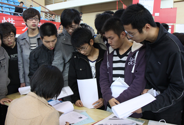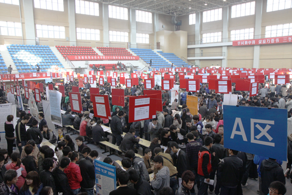 11月11日,我校在体育馆举行2012届建筑类毕业生供需洽谈会。