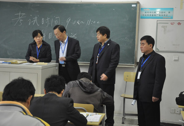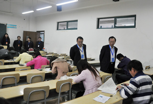 省、市领导高度重视此次考试,江苏省工程造价管理总站处长马恒群,徐州市建设局局长等主要领导及分管领导亲临我校进行督察工作,我校副院长季翔、张登宏、沈士德分别对考场进行巡查,指导考务工作。