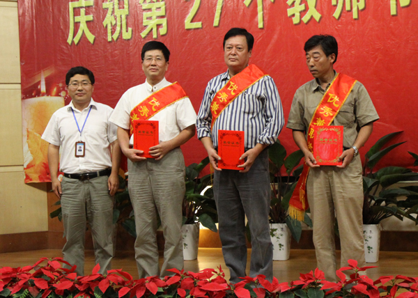 会上,袁洪志为从事教育工作已满三十周年的市政学院刘家春教授、张子贤教授和机关李宝峰同志,以及已满五十年教龄的武荣权老师颁发荣誉证书。任留钦宣读表彰决定,在热烈的掌声中,吴光林、任留钦、张登宏、沈士德分别为戚豹等27名优秀教师、高红等17名优秀教育工作者、米珍等17名优秀辅导员、史峰等3名优秀兼职教师颁奖。