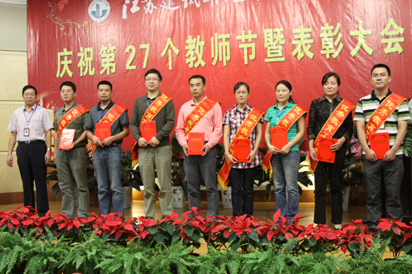 吴光林为优秀教师颁奖 吴光林为优秀教师颁奖 任留钦为优秀教育工作者颁奖 任留钦为优秀教育工作者颁奖 张登宏为优秀辅导员颁奖 张登宏为优秀辅导员颁奖 沈士德为优秀兼职教师颁奖 吴光林发表重要讲话 任留钦宣读表彰决定 季翔主持表彰大会 武荣权老师发言 孙武老师发言 黄梅老师发言 王彬馨同学向教师节献词 全体校领导、师生代表参加了表彰大会