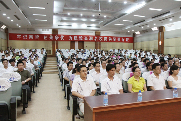 为庆祝党的生日,赞颂党的丰功伟绩,表彰先进,振奋精神,全面推进我校创先争优活动进一步深入开展,6月30日,我校在学术报告厅隆重召开纪念建党90周年暨创先争优活动表彰大会。校领导王旭善、袁洪志、吴光林、季翔、任留钦、张登宏出席大会并在主席台就坐。党委书记王旭善在大会上做了报告,院长袁洪志主持大会,党委副书记吴光林宣读了表彰决定。