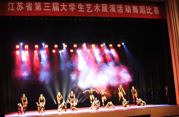 近日,从刚刚结束的江苏省教育厅主办的第三届大学生艺术展演活动中传来喜讯,我校选送的男生群舞《对抗》以95.78分在90个参赛节目中脱颖而出,荣获舞蹈比赛甲组(业余组)一等奖;歌舞剧《任真的小九九》荣获戏剧小品比赛甲组(业余组)二等奖、创作奖。
