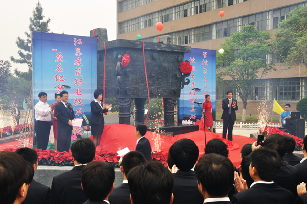 “更名纪念鼎”重达2.7吨,由徐州市人民政府赠铸,体现了徐州市人民政府对我校发展一以贯之的支持和厚爱。来自全校的中层干部、教师代表、学生代表参加了揭幕仪式。