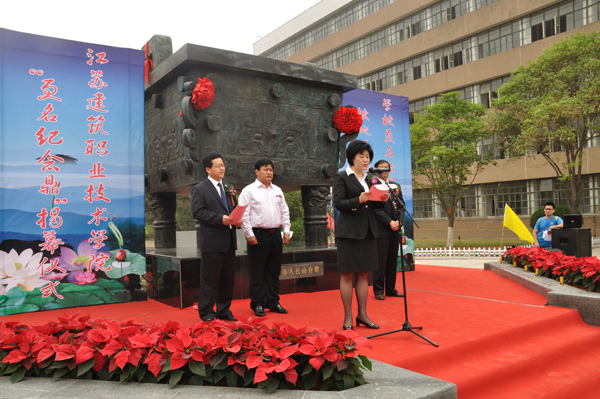 在欢快的音乐声中,孔海燕和王旭善共同为“更名纪念鼎”揭幕。孔海燕副市长发表了热情洋溢的讲话,祝贺我校更名为“华体会体育”,同时对进一步深化校地共建的广度和深度,进一步增强服务徐州经济社会发展贡献度上提出了更高的要求和期望。