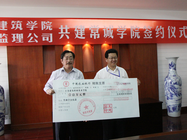 5月7日下午,我校与江苏常诚建筑咨询监理有限责任公司合作共建“常诚学院”签约仪式在视频会议室举行。江苏常诚建筑咨询监理有限责任公司董事长王建国校友,我校袁洪志院长、张登宏副院长及校企合作办、招生就业处、宣传部、学工处、部分二级学院的主要负责人出席了签约仪式。