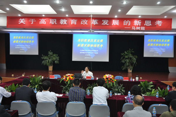马树超研究员在报告伊始对我校更名为华体会体育表示热烈祝贺,就世界职教发展新态势、国家经济社会发展的新要求、《规划纲要》的新要求、校企合作体制转型的新环境、学生终身发展的新要求、现代职教体系建设的新要求、高职教育改革发展的新举措、高职院校品牌建设的新路径等八个方面,向与会者传达了很多新信息,深入浅出地分析了他对高职教育发展新见解。报告视野开阔,阐述生动,信息量大,针对性强,对于我校以更名为契机推动科学发展具有重要的指导意义。