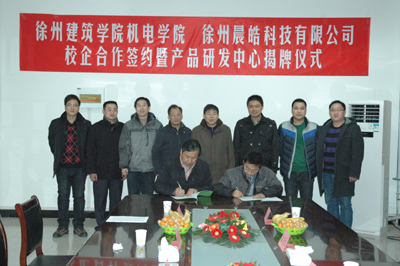寒假期间,我校机电学院与徐州晨皓科技有限公司举行校企合作签约暨产品研发中心揭牌仪式,校企双方就如何加强校企合作及项目产品开发进行探讨。我校张登宏副院长、徐州市科技局王栋副局长出席仪式并发表讲话。由机电学院教师蒲新征、梁纯、黄培组成的研发团队与徐州晨皓科技有限公司进一步加强合作,双方签订了GLC-1罐笼实时在线监测系统、STX钢丝芯输送带检测系统两项产品研发合同。