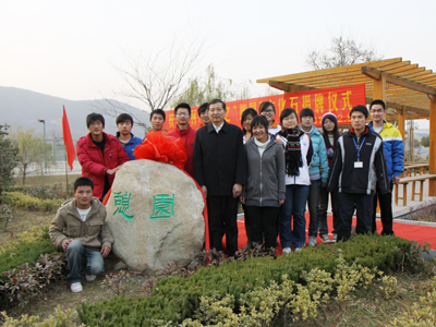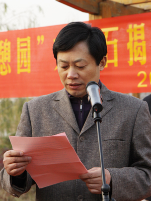 王旭善为“憩园”文化石揭幕