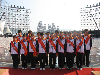 1023晚,2010中国徐州第十三届投资洽谈会暨第四届汉文化旅游节开幕式和大型主题晚会《汉影霓裳》在音乐广场盛大举行。受开幕式组委会邀请,由20名我校大一新生组成的志愿者参加了开幕式及主题晚会的志愿服务工作。从下午晚会彩排到晚上开幕式和正式演出,志愿者们承担了嘉宾引导、观众咨询、秩序维持、环境保持及舞台监督等工作。虽然晚间的云龙湖畔秋意渐浓,但却抵挡不了志愿者们的工作热情。志愿者们认真负责的工作态度和热情周到的服务受到了开幕式组委会和现场嘉宾观众的好评,展现了我校学生良好的精神风貌。在徐州电视台开幕式晚会电视直播字幕中,组委会对我校的支持给予鸣谢。