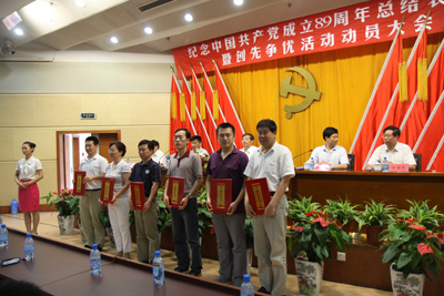 7月1日,我校庆祝中国共产党成立89周年总结表彰暨创先争优活动动员大会在学术报告厅隆重召开。校领导王旭善、吴光林、季翔、任留钦、张登宏出席大会并在主席台就座。全体共产党员参加了大会。