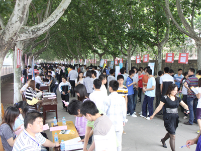 6月12日上午,我校与铜山经济开发区联合举办的2010届毕业生(夏季)招聘会在校军校路举行,130家用人单位提供了3100个就业岗位,吸引了我校及周边高校的近3000名毕业生前来应聘,各个招聘摊位前均人头涌动。