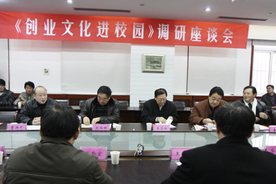 座谈会上,副院长张登宏就我校近几年的大学生就业、创业情况、人才培养及创业教育情况做了详细汇报。徐州市创业文化研究会常务副会长曹洪千介绍了徐州市创业文化研究会的宗旨及此次进校园活动的意义及具体实施方案,调研组其他成员就目前的市场上需要人才的类型、方向提出了建议,师生代表向在场的专家咨询了大学生创业过程中遇到的难题和解决之道。