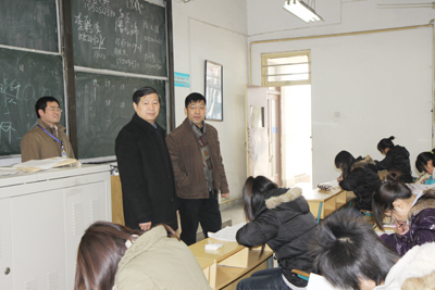 2010年1月18日是我校期末集中考试的第一天,党委书记王旭善、副院长季翔在教务处处长沈士德的陪同下亲自巡视了各个考场。在巡视时,王旭善书记不时俯身检查考生的证件及答题情况,并强调各学院、相关部门要高度重视期末考试,认真组织本次考试,加强考场管理,严肃考风考纪,做好学生考前教育工作,确保期末考试工作顺利进行。