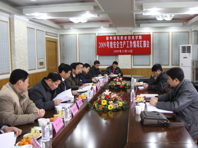 12月16日上午,徐州市政府安全生产工作检查组易善祥组长一行来我校检查2009年度安全生产工作。我校副院长任留钦对检查组一行来校检查指导工作表示欢迎并简要介绍了学校情况。保卫处处长刘志平汇报了我校2009年度安全生产工作开展情况。汇报后,检查组一行查看了有关台帐并先后来到校印刷厂,西校区教三楼、体育馆,学生餐厅检查安全生产实际状况,对我校的安全生产工作从领导重视到各种安全措施的落实给予充分肯定。反馈会上,检查组就下一步我校的安全生产工作提出三点宝贵意见。副院长任留钦对检查组给予的肯定表示感谢,并表示在今后的工作中,针对检查组提出的建议,继续加强安全生产工作,争取2010年学校安全生产工作再上新台阶。
