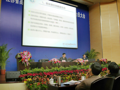 12月11日至12日,江苏省高职教育研究会第四届理事会第一次会员大会暨“课程改革与建设”学术研讨会在泰州召开。来自全省69所高职学院200多名代表参加了会议,省教育厅、省高教学会领导出席会议并作重要讲话,大会选举产生了江苏省高职研究会新一届理事会,我校袁洪志院长当选省高职教育研究会第四届理事会副理事长。