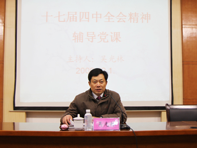 校党委副书记吴光林主持并做了辅导动员。他指出,全体党员要把学习贯彻十七届四中全会精神作为一项重要工作和重要任务来抓,清醒认识其必要性和紧迫性。一是党委的领导核心作用要求党委必须认真贯彻落实党的十七届四中全会精神;二是党的十七届四中全会提出的“建设马克思主义学习型政党”要求必须在全党营造浓厚的学习氛围;三是我校全力以赴建设高水平国家示范高职院校必须坚持党委的坚强保障。