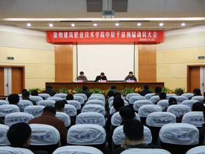 11月27日下午,我校召开中层干部换届动员大会,正式启动我校新一轮中层干部换届工作。院长袁洪志宣读了我校中层干部换届工作实施方案,党委书记王旭善作重要讲话,党委副书记吴光林主持大会。