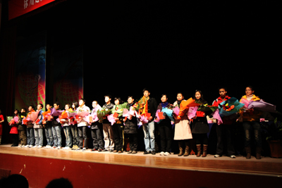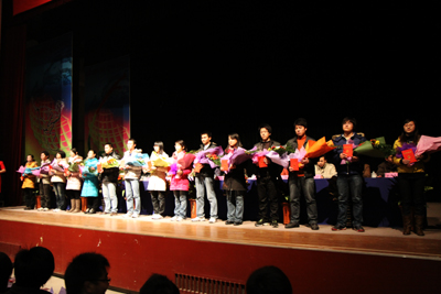 第六届新生节各单项活动获奖集体和个人代表上台领奖