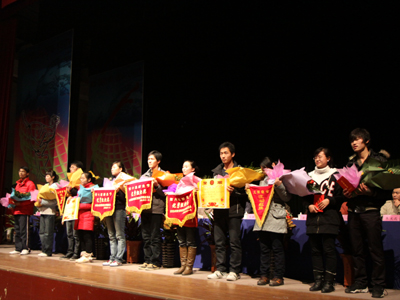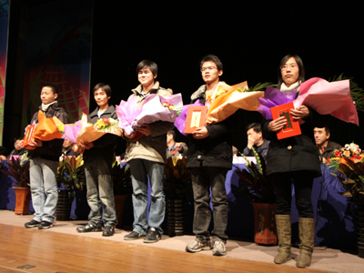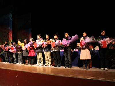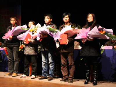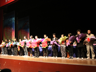 2009年大学生暑期社会实践活动先进集体及先进个人代表上台领奖