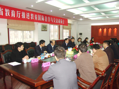 会上,王斌泰详细介绍了全省教育国际合作与交流以及开展中外合作办学工作情况。林跃就项目的具体实施情况提出了建议。王旭善主持会议并介绍了我院相关情况。