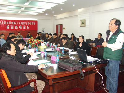 论坛由电信系党总支书记黄国斌主持,台湾正邦资讯公司董事长苏士杰,龙信建设集团专家陈海龙,电信系主任袁德明、副主任李志球,计算机网络技术专业建设负责人孙秋波,电子信息工程技术专业建设负责人刘天飞等分别作了专题发言。