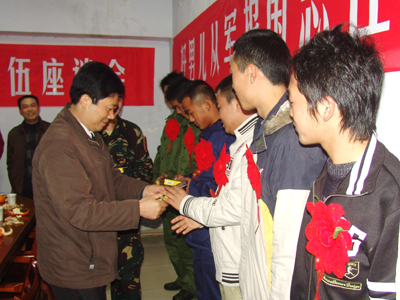 最后,吴光林代表学院党政给即将步入军营的同学们带上了大红花并每人赠送一台袖珍收音机。吴书记对即将入伍的同学们表示了祝贺,并对他们提出了殷切希望与温馨祝福,希望他们在军营里要勇于吃苦,努力学习,刻苦训练,在部队多立功受奖,早日把喜报寄回家乡与学校!