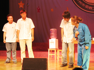 今年3—5月,中共徐州市委教工委、徐州市教育局联合举办了“和谐校园、阳光心灵”校园心理剧比赛,来自全市各县(市)、区教育系统、在徐高校、高职校等56个代表队参加了比赛。我院选送的校园心理剧《校工妈妈》以独特的结构、丰富的内容、幽默的表演、突出的效果荣获一等奖。