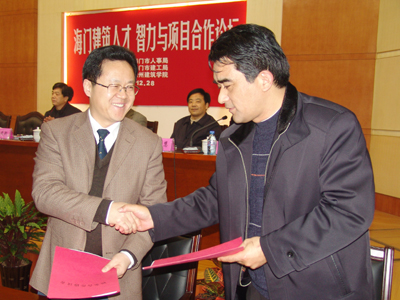 12月28日下午,我院在学术报告厅举办了海门建筑人才、智力与项目合作论坛。我院院长袁洪志、副院长季翔、海门市人事局局长蔡建新、海门市建筑工程管理局局长刘亚珍、徐州市人才服务中心主任王涛、海门市人事局副局长杨颖芳、海门市建筑工程管理局副局长邵慧出席会议并在主席台就座。活动由我院副院长张登宏主持。参加活动的还有海门市有关政府部门和企业的领导,徐州市有关政府部门的领导以及我院的部分师生。
