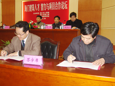 随后,海门市人才服务中心与徐州市人才服务中心举行市场交流与合作签约仪式;我院与海门建筑工程管理局举行联合办学合作签约仪式;我院与海门市人事局举行建立就业实训基地合作签约仪式;我院分别与中南控股集团、龙信建设集团有限公司、江苏南通三建集团公司、南通兴江建建筑集团有限公司、南通万众建筑集团有限公司五家单位举行校企合作签约仪式,并举行了我院与中南控股集团、龙信建设集团等七家单位的就业、实习基地授牌仪式。