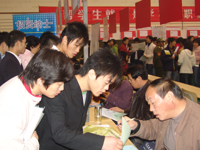 11月24日上午,我院2008届毕业生供需洽谈会在体育馆举行,来自北京、上海、江苏、山东等地的近300家用人单位前来我院招聘毕业生。洽谈会上,各用人单位对毕业生的专业、英语等级、计算机等级、综合能力等能力和水平提出了具体要求,其中,建筑工程、道路与桥梁工程、矿井建设、矿山安全等专业依然比较抢手,截止到记者发稿时,许多用人单位已经招聘到了符合条件的毕业生,部分毕业生当场就与用人单位签订了协议,还有一些低年级的学生到会场了解就业情况,提前为自己作了一份职业规划。