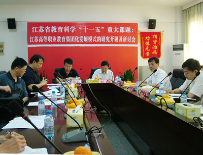 7月16日,江苏省教育科学“十一五”重大课题,江苏高等职业教育集团化发展模式的研究开题及研讨会在南京化工职业技术学院成功召开。会议由南京化工职业技术学院院长徐建中致辞,课题主持人王明伦为研究课题作了开题报告。我院副院长张登宏、科技产业处处长韩成标和招生就业处副处长许能生参加了会议。