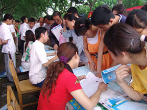 7月23日,2007年江苏省第二阶段高招咨询会在我院举行,本次高招会是由我院与《扬子晚报》社、江苏省教育学会联合举办的。来自省内外120多所的民办本科高校和专一、专二批次的高职院校参加了本次高招会,徐州以及周边地区的数千名考生和家长前来咨询志愿填报技巧、各高校专业概括等信息。