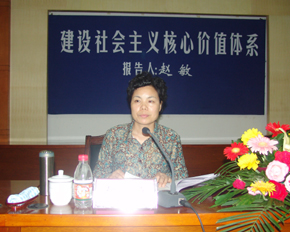 5月19日下午,徐州市委党校、徐州市讲师团成员赵敏副教授应邀来我院作了题为《建设社会主义核心价值体系》的精彩报告。党委副书记吴光林主持了报告会,第十八期干部培训班全体成员、机关党总支全体干部、人文系和思政部全体教师听取了报告。