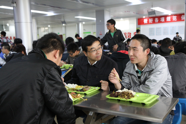 丁晓昌副厅长在食堂与学生交谈