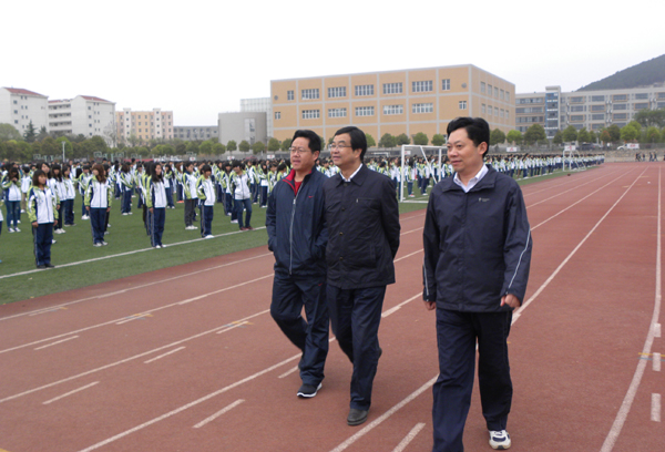 丁晓昌副厅长在我校党委书记袁洪志、院长吴光林的陪同下察看学生早操