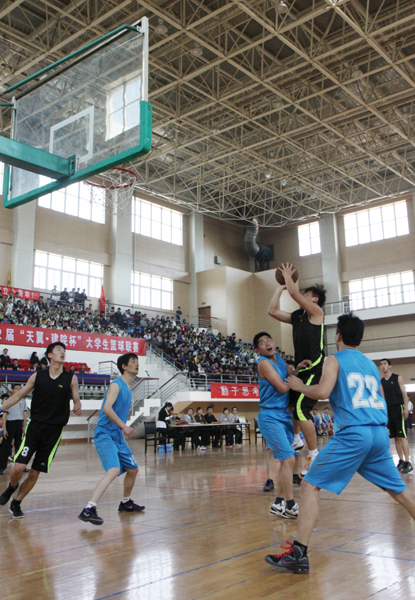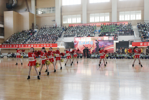 随后,校大学生艺术团的啦啦操表演和武术协会的舞狮表演将开幕式推向高潮。开幕式后,我校校篮球队与中国电信徐州分公司篮球队为观众献上了一场精彩的篮球表演赛。