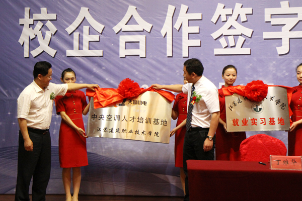 袁洪志、王雪峰共同为设在天勤机电的“华体会体育就业实习基地”和设在学校的“江苏天勤机电设备工程有限公司中央空调人才培训基地”揭牌;丁维华、王雪兵代表校企签署校企合作协议。同时举行了“天勤机电奖助学基金”捐赠仪式。