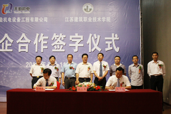 5月11日下午,我校与江苏天勤机电设备工程有限公司校企合作签约仪式在中汇国际酒店隆重举行。我校党委书记袁洪志、副院长张登宏,天勤机电设备工程公司总经理王雪峰、副总经理王雪兵以及我校建筑设备工程学院党政领导、相关职能部门负责人和相关行业、企业、媒体代表出席了签约仪式。