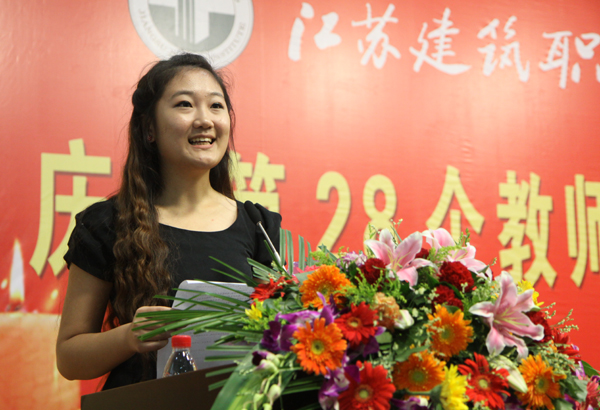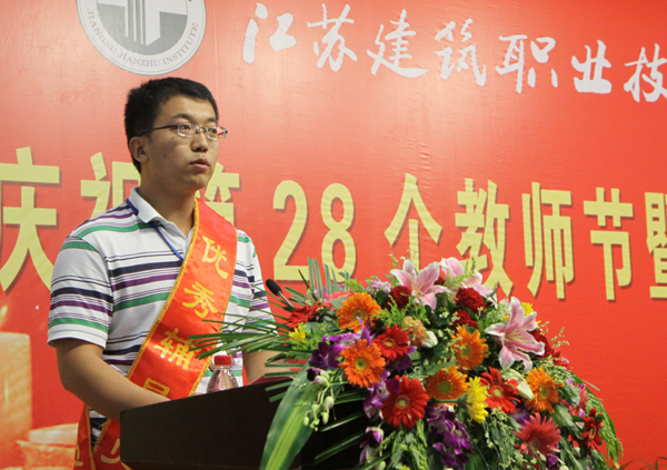 优秀教师代表建筑工程技术学院王培兴副教授、优秀辅导员代表矿业工程学院崔廷峰老师分别发言,学生代表装饰学院胡雨寒同学向教师节献词。