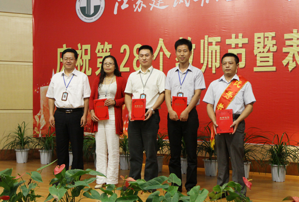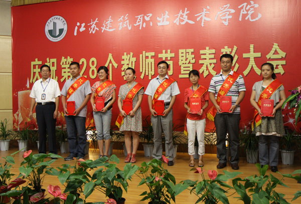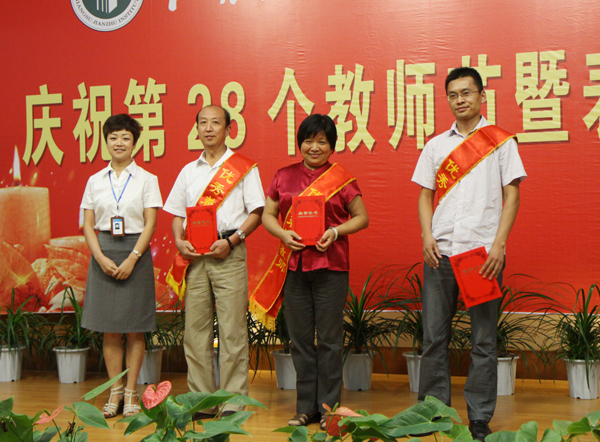 会上,袁洪志为从事教育工作已满三十周年的学校副院长季翔、任留钦,机电学院院长张君伟,思政部教授罗秋萝,建管学院书记荣国瑞颁发荣誉证书。季翔宣读表彰决定,在热烈的掌声中,吴光林、季翔、任留钦、梁惠分别为赵峥等25名优秀教师、胡永等17名优秀教育工作者、汤雪峰等17名优秀辅导员、卞峰等4名优秀兼职教师颁奖。大会还表彰了各专业毕业生认为对个人成长最有帮助的教师(由麦可思公司对我校2011届毕业生进行调查后评出),袁洪志为前五名教师颁奖。