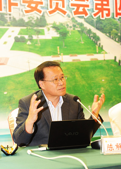 著名职教专家、全国高职高专校长联席会议秘书长陈解放教授作报告