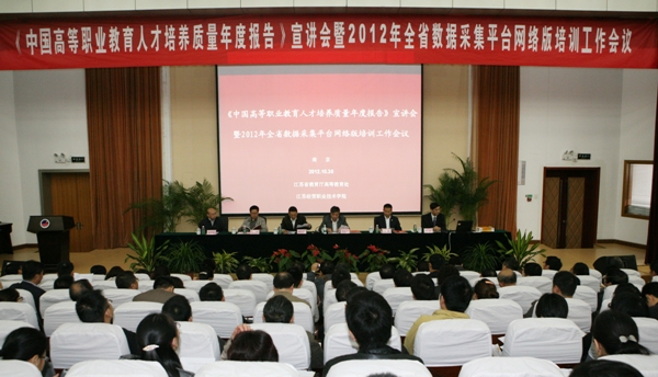 2012年10月29-30日,江苏省高等职业院校人才培养工作状态数据采集平台网络版培训工作会议在江苏经贸职业技术学院召开。省教育厅高教处徐子敏处长、经贵宝副处长、俞向东副处长、教育部专家、经贸学院领导出席了本次会议。