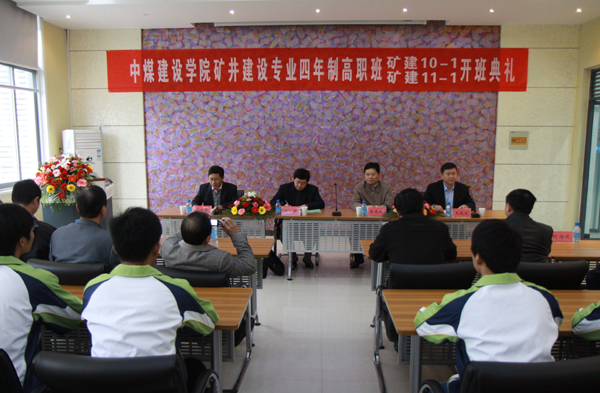 在开班仪式上,中煤建设集团副总经理、总工程师、中煤建设集团科学研究院院长、中煤建设学院院长陆伦同志对四年制矿井建设的学生提出了四点要求:一是要认真学习各门专业课,特别强调对英语学习的要求,中煤建设集团在未来更大的空间内拓展海外市场,对专业英语和听说能力都有较高要求;二是遵守职业道德,忠诚企业;目前录取27名学生已经是中煤建设集团的准员工,所以你们的言行代表企业的形象;三是要提高自身的文化修养,多涉猎各种书籍,拓宽自己的知识面;四是要增强自己的体魄,矿井建设工作是一项既需要一定的专业知识,又需要有健康的体质,才能够胜任艰苦工作的需要。