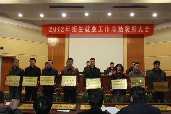 12月18日下午,我校在学术报告厅召开2012年招生就业工作总结表彰大会。校领导吴光林、张登宏季翔、任留钦、梁惠出席了会议,全体中层干部、各二级学院学生工作领导小组成员、教研室主任、专业负责人、专(兼)职辅导员、机关教辅干部、参与招生宣传人员及部分教师代表参加了会议。