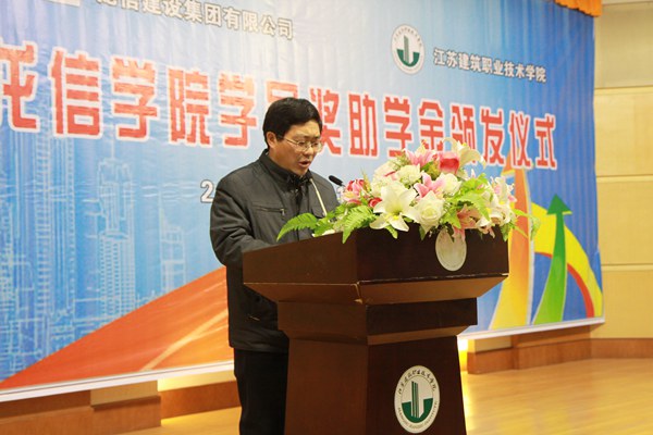 新年伊始,龙信集团副总经理陈耀星一行于1月10日来我校为龙信学院优秀学子们颁发奖、助学金,并招聘第三届龙信学员。颁奖仪式在学术报告厅隆重举行,我校沈士德副院长,校企合作办公室、学工处、宣传部等职能部门负责人,建工、建管、设备等二级学院领导参加了会议,会议由校企合作办主任许能生主持。