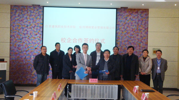 徐州博顿职业管理有限公司董事长王培先生和校企双方相关职能部门负责同志,以及经管学院领导、相关教师参加了签字仪式。仪式前,公司领导还参观了学校建筑技术馆。(经管学院 刘胜勇)