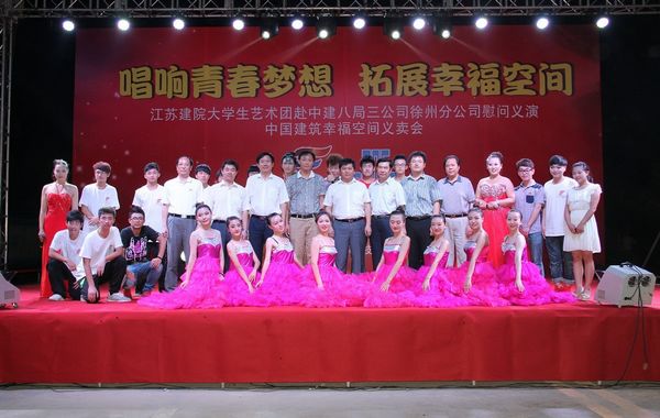 7月3日晚,雨后的徐州潮湿闷热,但抵挡不住中建八局三公司徐州公司建筑工人的热情,2000余名建筑工人将演出现场围得水泄不通,专程前来参加活动的中建八局三公司政工部领导及徐州公司的全体领导观看了慰问演出。该公司我校毕业的校友也从各个项目部汇聚到演出现场,并带来了精彩的节目。两个小时的演出让现场观众意犹未尽,公司领导和我校校友诚邀艺术团再来演出。