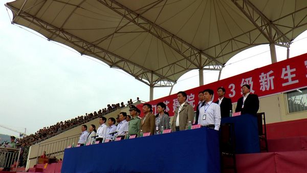 9月27日上午,我校2013级新生军训汇报大会在西操场隆重举行。四千余学生经过两周的军事训练,今天以饱满的精神状态接受学校领导的检阅,院长吴光林,中国人民解放军73101部队教导员徐宝,党委副书记张登宏,副院长季翔、任留钦、梁惠及相关职能部门及各学院分管学生工作领导观看了汇报演出。